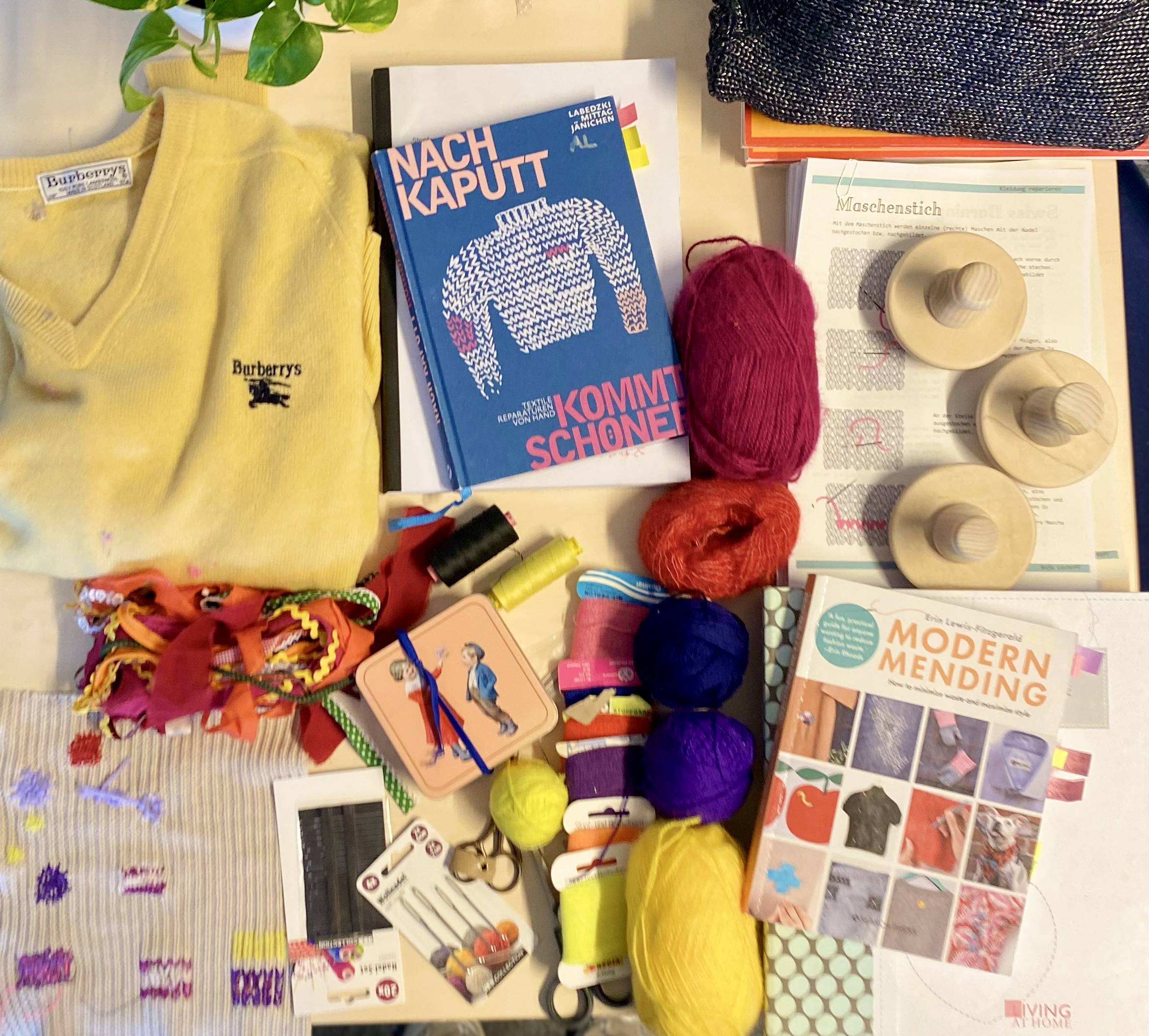 re:pair FESTIVAL Wien - Reparieren als kreative Praxis: Am Sonntag folgte der Beitrag der beiden Lehrenden beim re:pair FESTIVAL Wien. Gemeinsam gaben sie einen Workshop zu den Techniken des Scotch und Swiss Darning, zwei Methoden der Strickreparatur. Über 20 Teilnehmerinnen brachten ihre reparaturbedürftige Maschenware mit - darunter Pullover, Socken und Hausschuhe - und machten sich mit Begeisterung ans Werk. Garne in allen Farben luden zum Experimentieren ein. Zum Einstieg erhielten die Teilnehmenden ein Probestück, das als textile Leinwand diente. Hier konnten sie frei gestalten, Farben kombinieren und die beiden Techniken erproben. So entstanden farbenfrohe individuelle Reparaturen, die gleichzeitig funktional und ästhetisch ansprechend waren. Das re:pair FESTIVAL Wien fand 2025 zum vierten Mal statt und widmet sich dem Reparieren als kultureller Praxis. Vom 13. bis 31. Oktober 2025 verwandelte sich das Atelier Augarten in einen Ort des kreativen Austauschs. In Workshops, Vorträgen und Ausstellungen zu Nachhaltigkeit, Kreislaufwirtschaft und sichtbarer Reparatur zeigte sich, wie viel Kreativität, Wissen und Wertschätzung im Wiederherstellen steckt.
